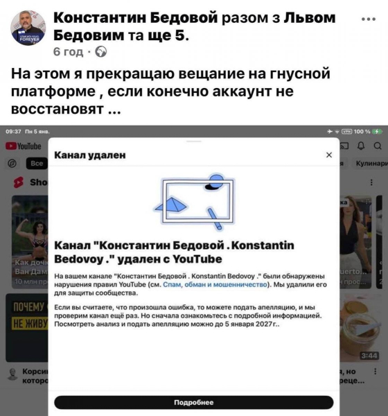 Google і YouTube припинили діяльність акаунтів сепаратиста і проросійського агітатора Костянтина Бєдового, відомого під кримінальним ім’ям Костя Калоша. Він покинув Україну і, згідно з одною з гіпотез, переховується в росії, повідомляють «Українські новини».