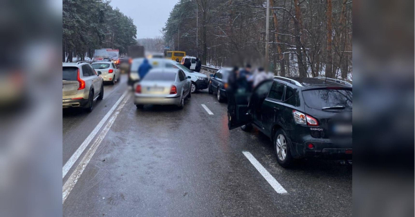 Найбільш гучною подією дня стала ДТП на вулиці Дніпроводській з Києва до Вишгорода, де через ожеледь зіштовхнулись 13 транспортних засобів.