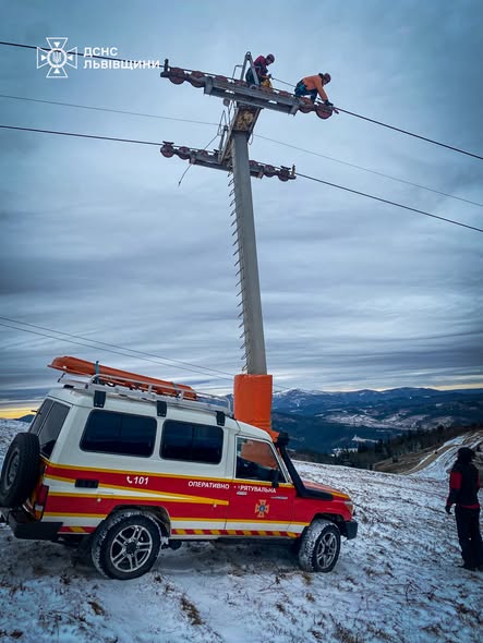«26 грудня об 11:50 до рятувальників надійшла інформація про те, що на горі Захар Беркут в сел. Волосянка Стрийського району трапилася затримка крісельного підйомника, на якому знаходяться люди. За інформацією на 13:04 гірськими рятувальними підрозділами з підйомника евакуйовано 42 особи (з них 22 дитини). Заходи з визволення туристів з канатної дороги тривають. Загалом на підйомнику перебуває близько 80 людей. В операції задіяно 42 рятувальника і 7 одиниць спеціалізованої техніки», — йдеться у звіті.