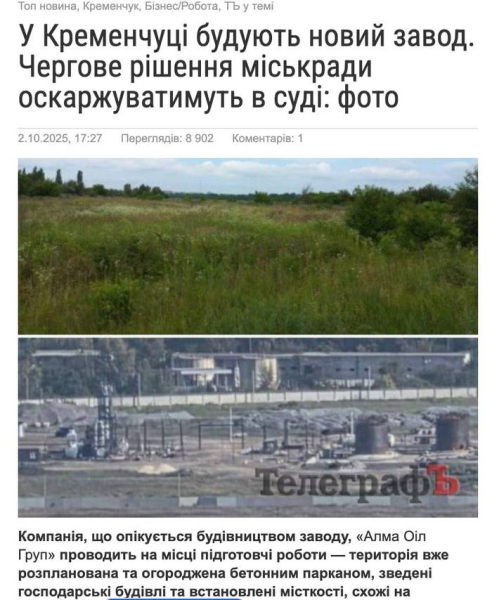 Мова йде про компанію ТОВ «АЛМА ОІЛ ГРУП», що знаходилась на етапі підготовчих будівельних робіт по зведенню нового нафтопереробного комплексу на території Північної промислової зони Кременчука. У ніч на 7 грудня внаслідок точного удару росіян виробничі площі об’єкта були цілком розгромлені.