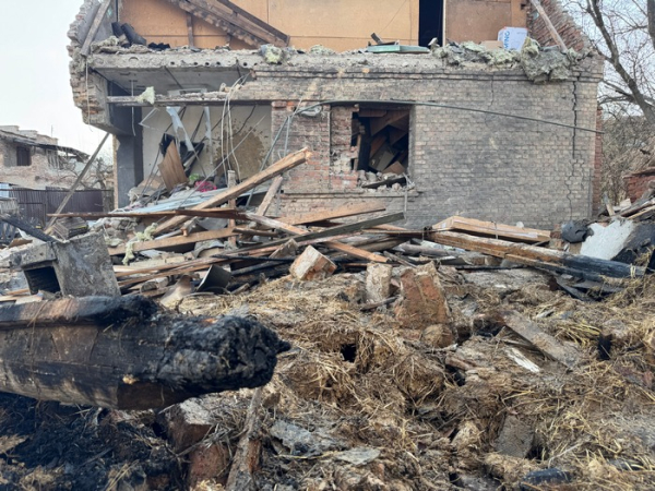 Як з’ясувалося, БпЛА влучив недалеко від вхідних дверей. Тому найбільше постраждав коридор. Тріснув фундамент. Усі стіни в тріщинах. Одну стіну вирвало і все обвалилося. Нічого не залишилось від ванної кімнати.